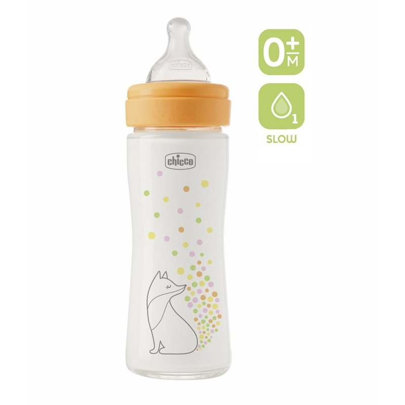 مرضعة زجاج -240- سيليكون (برتقالي بنات) 0M+ Slow #حديث
